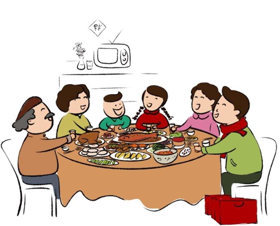 与长辈吃团圆饭的孩子学会了明礼和尊重