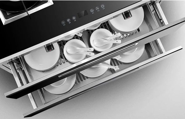 在选购时可以自由选择搭配,不仅解决了厨电产品功能单一的问题,而且大容量的一体拉篮式消毒碗柜,餐具再多也不乱,轻松收纳,提高了厨房空间的使用率。