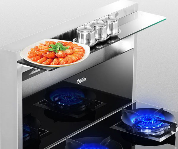 此外,新城注册集成灶顶部置物台设计,放一些调料盒、碗盘等做饭时总能用到的东西,顺手就能拿到很方便。